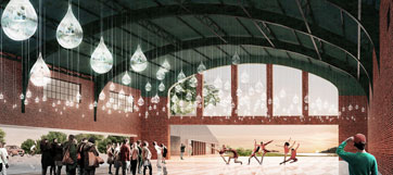 Below is an image of the Armory Portal. CDR re-imagines the Armory as a shared room of passage from the city to the park, creating a space that is flexible and offers a location shared public entities.