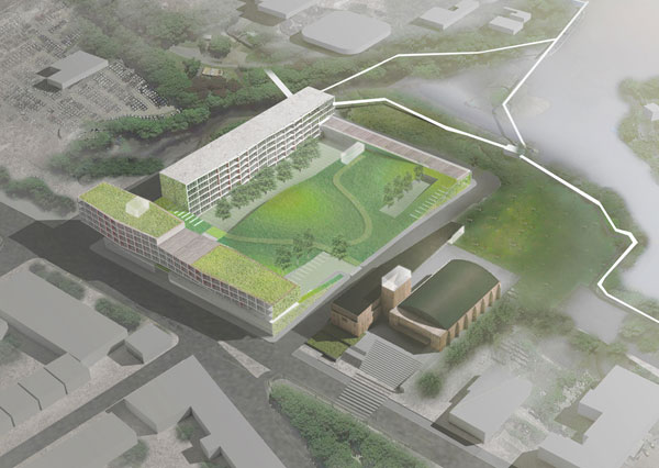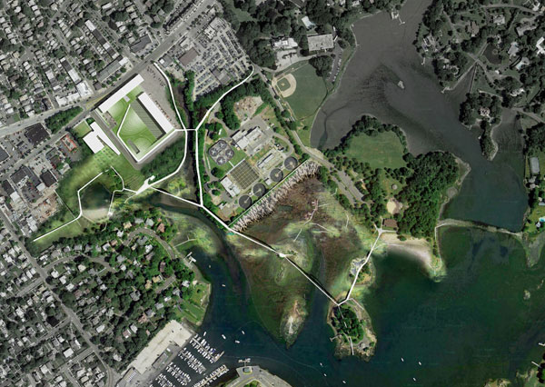 Rather than focus on a grand architectural gesture, CDR Studio conceives of the site as an extended field of linkages to the New Rochelle waterfront. The scheme consolidates residential and hotel development on the perimeters of the City Yard property with commercial use along Main Street. Development at the site then allows for the remainder of the parcels to be given over to public park land.